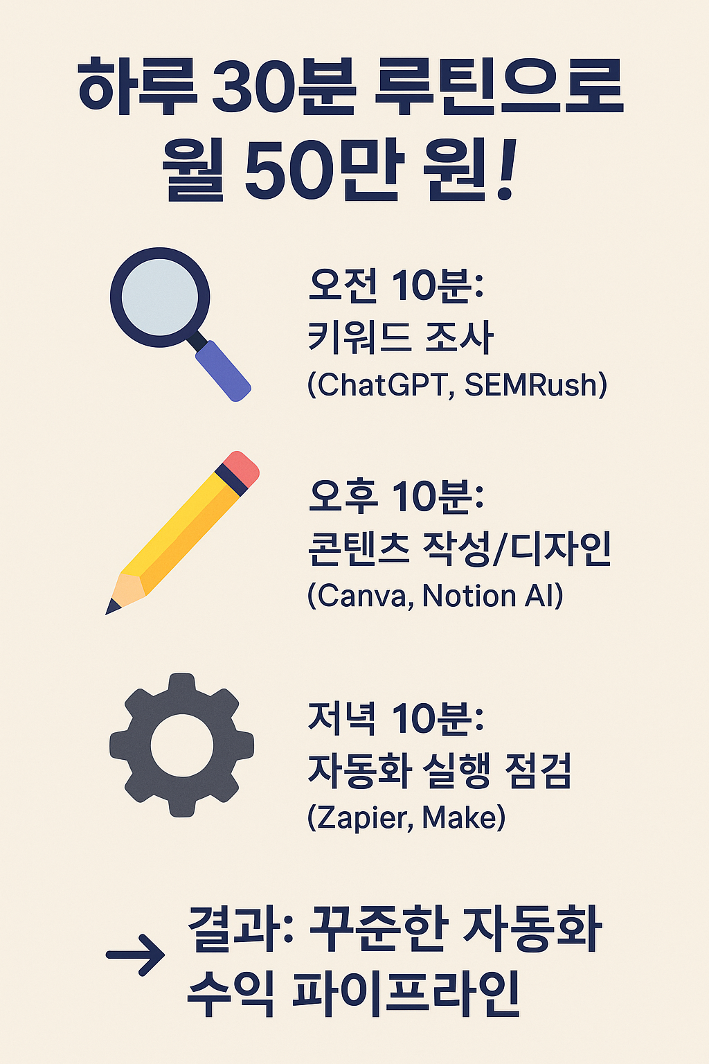 하루 30분 부업, AI 자동화 부업, 월 50만 원 버는 방법을 찾고 있다면